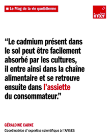 Quant aux aliments en rayon, notamment importés, l’Agence nationale de sécurité sanitaire de l’alimentation dénonce des teneurs maximales réglementaires pas suffisamment protectrices pour la santé du consommateur. Dès lors, il convient de réviser à la baisse les seuils pour les produits les plus consommés et les plus contributeurs à la contamination humaine. Des mesures renforcées de contrôle et de surveillance de la chaîne alimentaire sont aussi réclamées. Ne pas perdre le sens que le « Cadmium Tue » moralité ont mangent ont meurt ont ne mangent pas même résultat.